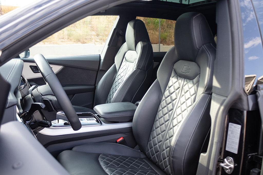 Tapicería de cuero Valcona con grabado S y acolchado de rombos (1.430€)